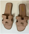 Carrie Open-Toe Saffiano Leather Sandals β Nude Khaki