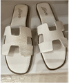 Josefina Open-Toe Saffiano Leather Sandals β White